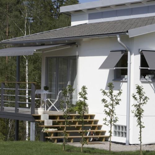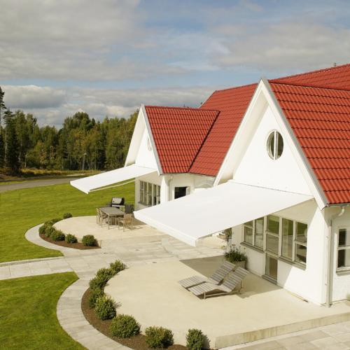 Finess har dubbla vajrar i armarna och vindsäkringsstag i teleskoputförande som tillval. Vinkelomställningen görs utan verktyg och underlättas av ett vattenpass i frontprofilen. Sunflex har samma goda egenskaper och är en slitstark året-runt-markis, som lätt manövreras till önskad lutningsvinkel.
